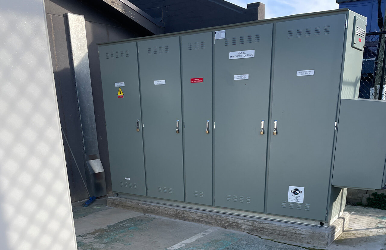 Stowe Australia were engaged to manage the installation, including all contractor management. The project required a new 3000Amp HV kiosk, pillar board and new main switchboard, the abolishment of the three existing connections to site and rationalising back to one main supply.