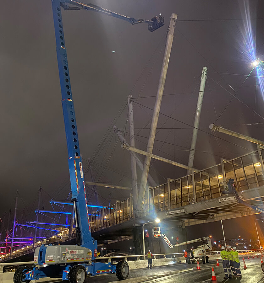 The project scope included installing new LED fixtures on the bridge’s masts and canopy, supplying, and laying DMX-controlled and power cabling, and deploying a state-of-the-art lighting control system to enable dynamic, programmable illumination. The redesign significantly improved lighting precision, colour saturation, and visual impact while reducing maintenance demands.