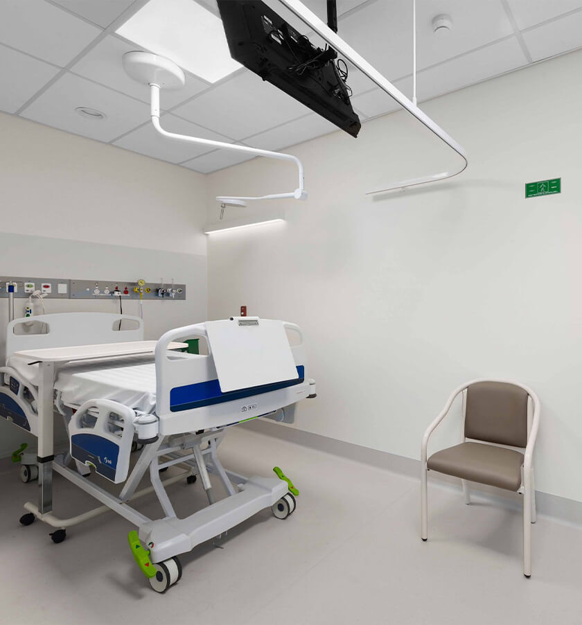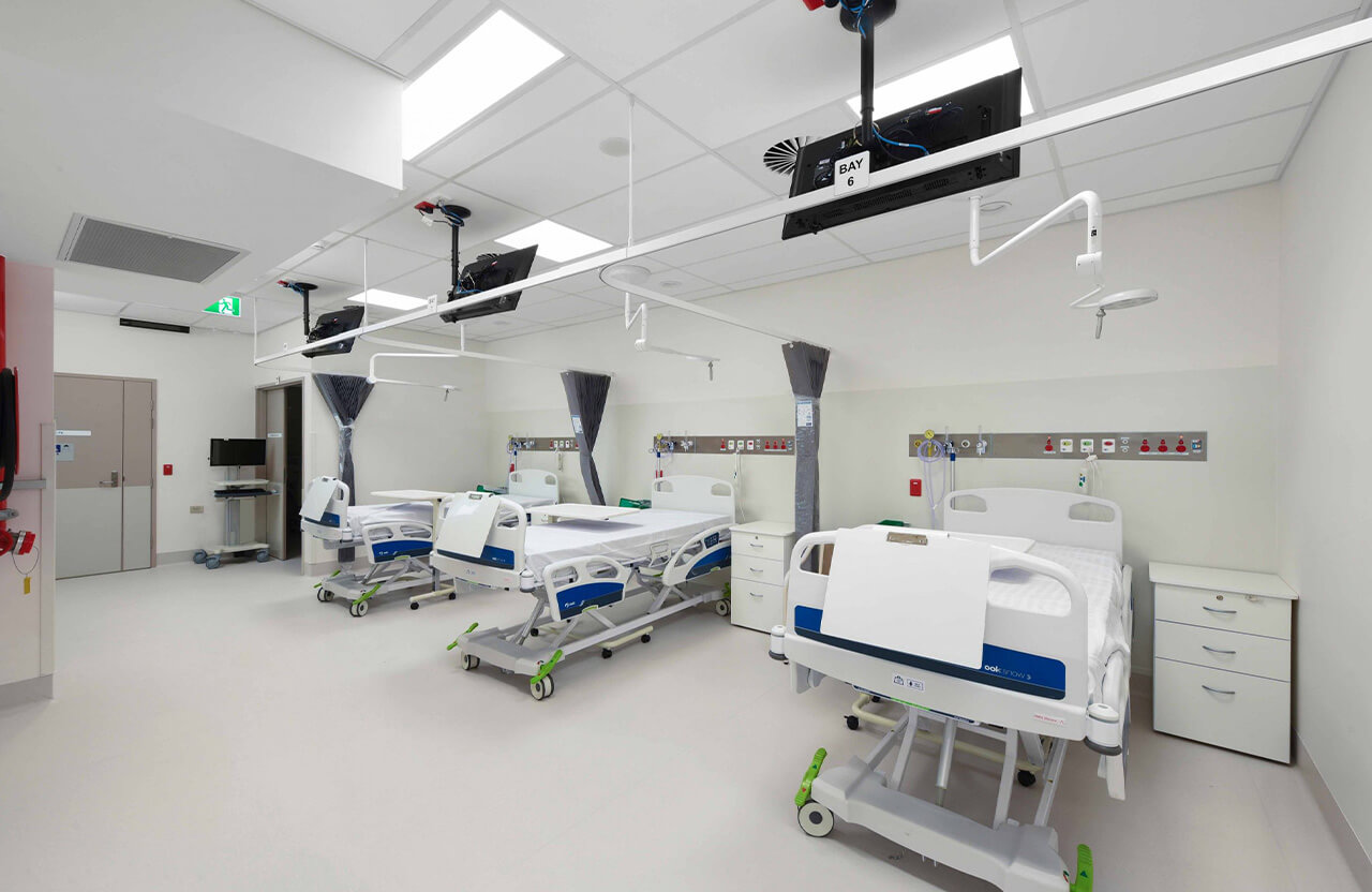 The project included power, lighting, nurse call, CCTV, access control, and biomedical-certified systems to support a new treatment area with eight patient bays.