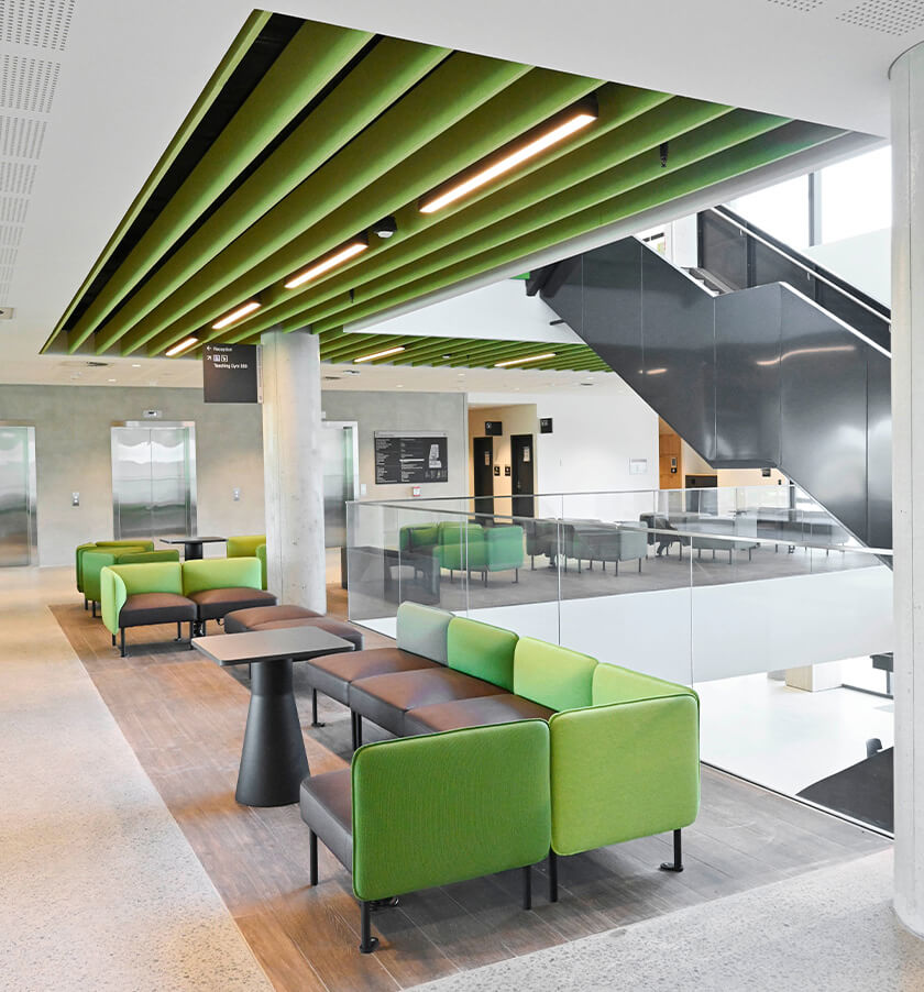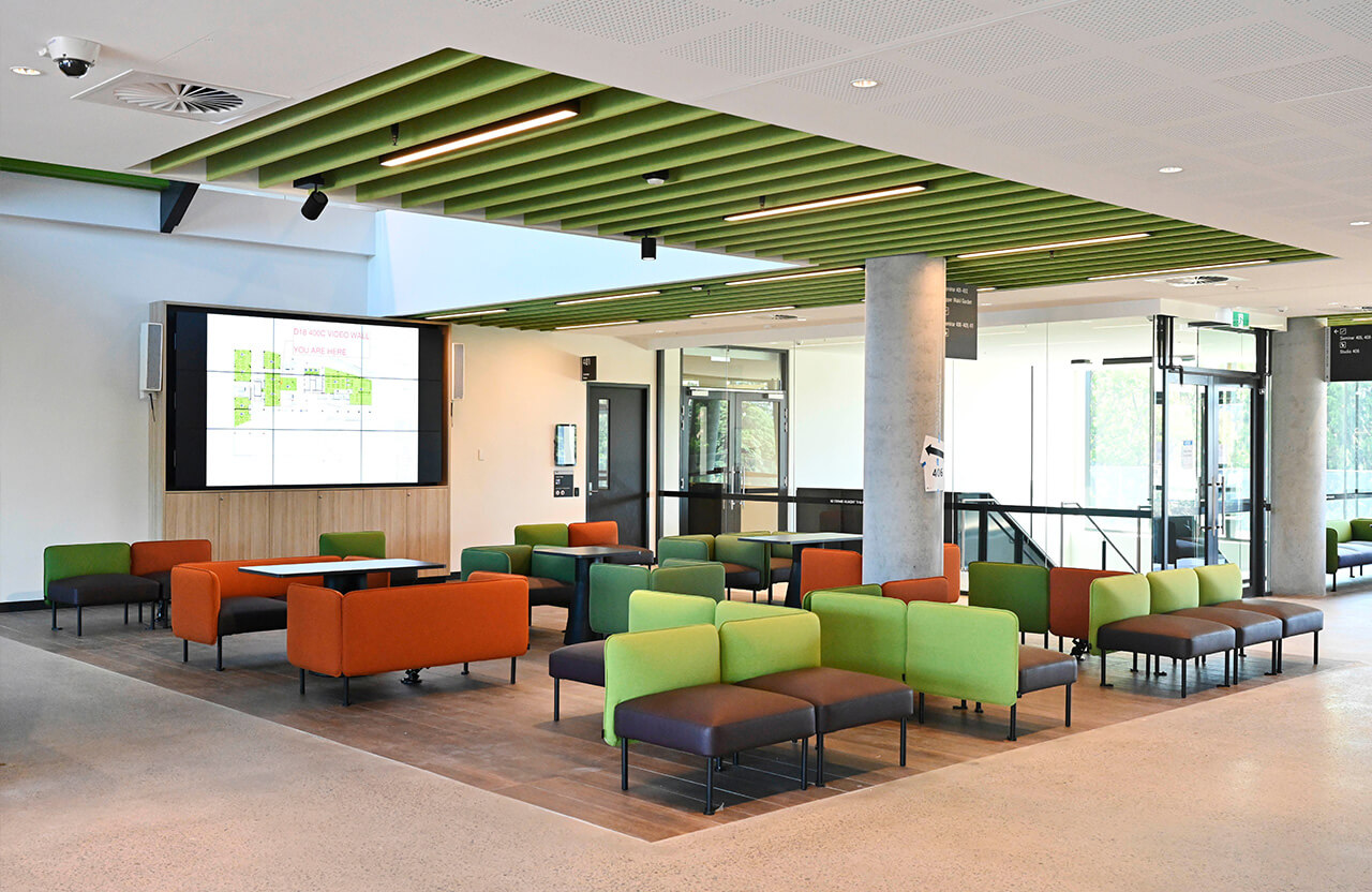This building houses several highly specialised multi-disciplinary educational spaces which include lecture theatres, simulation hospital wards, gyms, medical imaging centres, laboratories, libraries, offices, open plan work areas and even complex climate chambers for health research.